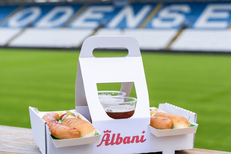 Smurfit Westrock kallar den för ”Stadium Meal Carrier”. Den har utvecklats efter önskemål från danska Odense Boldklub. Den löser problemet med att transportera flera drycker, mat och snacks från kiosken till sittplatsen.