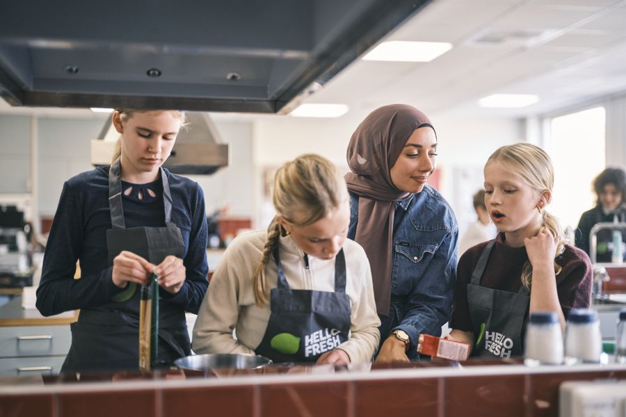 För att inspirera och lära fler barn och unga om matlagning, hälsa och hållbarhet genomför HelloFresh initiativet Mat-timmen tillsammans med kokboksförfattaren och TV-kocken Camilla Hamid. Foto: Oskar Omne