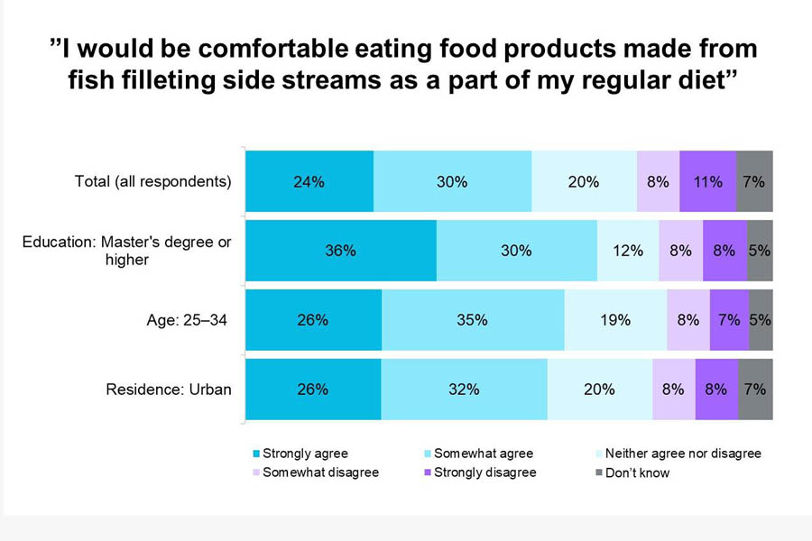 I en ny studie tillfrågades över 1 500 personer från Storbritannien, Sverige och Tyskland om deras inställning till livsmedel tillverkade av sidoströmmar från fisk. Undersökningen visar att 81 procent av de svenska respondenterna har en positiv eller neutral inställning till att äta mat som tillverkas av sidoströmmar från filéering, vilket pekar på nya tillväxtmöjligheter för processorer.