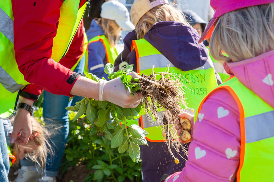 Ute på potatisfältet fanns en förskoleklass från Fiskbyns Förskola i Torekov med för att hjälpa till och gräva upp de första primörerna. Sofiero Slottsrestauranger tillagade och bjöd på goda färskpotatisrätter i sitt utekök. Sommaren är på gång med alla sina somriga smaker.